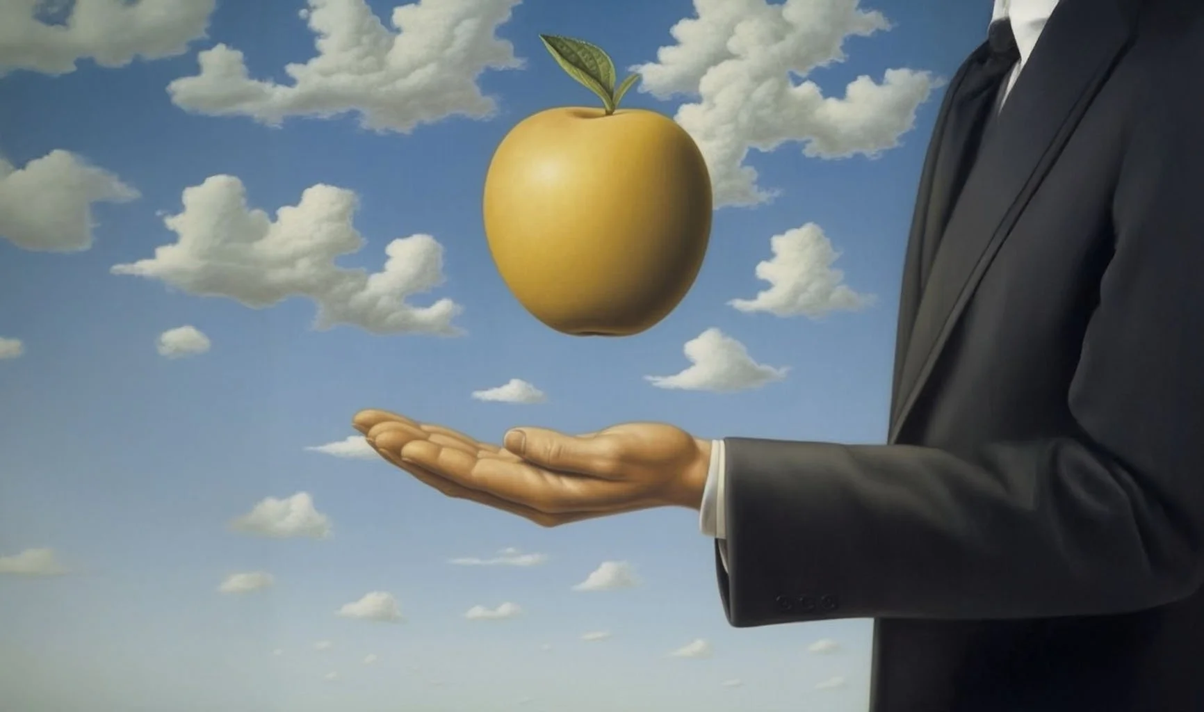 Visual creation: Pierre Guité with Mid-Journey: A suited hand presents a levitating golden apple—choice, value, and the promise of regeneration.